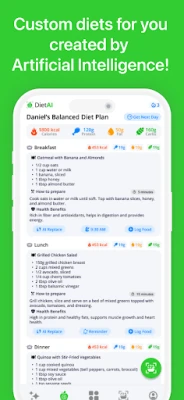 Представи си интелигентен съюзник, който разбира уникалността на твоя организъм и нужди. DietAI е именно това – твоят многофункционален асистент за контрол на калориите и детайлно проследяване на хранителните вещества. Независимо дали стремежът ти е да редуцираш теглото, да натрупаш мускулна маса или просто да поддържаш балансиран начин на живот, DietAI създава индивидуални хранителни режими, съобразени точно с теб. От Кето и Средиземноморска до Интермитентно гладуване и Високопротеинова диета – избери своя път, а DietAI ще те води, като вземе предвид твоя ръст, тегло, алергии и лични предпочитания.