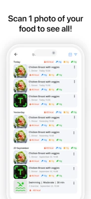 Използвай силата на изкуствения интелект, за да опростиш ежедневието си. С DietAI, записването на приетата храна става безпроблемно – просто направи снимка или въведи текст, а нашият интелигентен алгоритъм моментално ще изчисли макронутриентите и всички ключови елементи. Сканирай продукти и получавай подробна информация за тяхната хранителна стойност за секунди. Следи своя прием на въглехидрати, протеини, мазнини, фибри и над 25 жизненоважни минерала, за да си винаги информиран и в синхрон с целите си. Освен това, интегрирайки се с твоя активен начин на живот, DietAI позволява да регистрираш тренировките си и да визуализираш прогреса си с интуитивни графики за теглото.