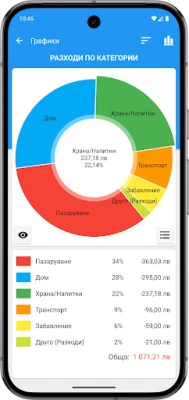 Задълбочете разбирането си за финансите с над 5 различни вида диаграми, които ви помагат да сравнявате приходите и разходите си, за да видите ясно потенциала си за спестяване. Интуитивният календар ви показва ежедневните операции и предстоящите плащания, гарантирайки, че никога няма да пропуснете важен срок. Приложението предлага и удобно обобщение на паричния ви поток за даден период. За ваше удобство, Бърз бюджет - Следи разходите поддържа синхронизация на до пет устройства, позволява експорт на данни в PDF, CSV и XLS формати и осигурява автоматично архивиране в Dropbox или локално, както и защита с парола. Персонализирайте всяка страница с цвят по ваш избор и настройте напомняния, за да не забравяте да вписвате ежедневните си транзакции.