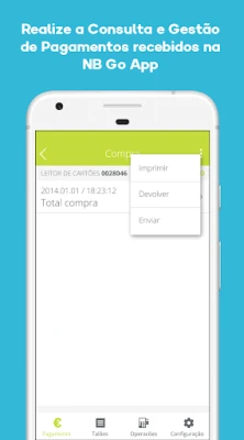 С NB Go от NOVO BANCO приемате клиентски плащания с карта или MB WAY. Обработвайте транзакции незабавно, където и да сте. Приложението NB Go на вашия смартфон, свързано чрез Bluetooth с терминала, осигурява бързи и удобни разплащания за вашия бизнес.