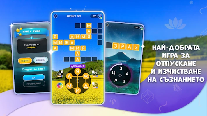 Пред вас се разкриват над 5000 уникални пъзела, гарантиращи, че никога няма да ви е скучно. Всеки един от тези пъзели е създаден на базата на експертно подбрани речници, които не просто тестват знанията ви, но и ви предизвикват по един увлекателен начин. Докато напредвате, ще имате възможността да разкривате тайни думи, скрити във всяко ниво, добавяйки още едно измерение към вашето изследване. Но това не е всичко – докато разрешавате тези лингвистични загадки, ще пътувате виртуално до спиращи дъха места от цял свят, подсилени с успокояващи анимации и звукови ефекти, които превръщат всяка сесия в истинско приключение.