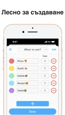 Вземете решенията си без усилие с Wheel+! Спрете да мислите прекалено – просто завъртете това щастливо рулетно колело за отговори на всекидневието. Независимо дали избирате ястие, дата или просто "Да" или "Не", Wheel+ ви помага лесно.